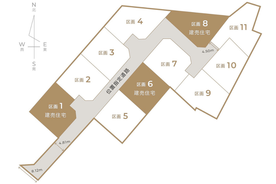 | 土地面積 | 190.53㎡(57.64坪)~209.83㎡(63.47坪)全11区画(内3区画は建売区画) |